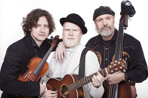 As a proud albino man with a big bushy white beard, Chris Dent (Albi) makes for a striking figure. With his smooth, almost angelic voice and warm gentle demeanour, he naturally captures and holds his audience's attention by just being the man he is. On stage he is joined by his wolves, Pascal Roggen and Micheal Young. This pack, with a line up including Violin, Double Bass, Guitar and rich three part vocal harmonies, come together with a massive sound to play everything from your soul-stirring ballads to your ear worming, foot stomping hoe downs.  All three musicians are powerful and compelling performers in their own right. But when they come together, they create something larger than any individual, something incredible, a must to see.