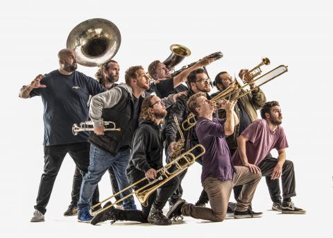 Their presence is formidable; armed with trumpets, trombones, saxophones, drums, the mighty sousaphone and the massive presence of Roman MC. They are an acoustic force of nature, high energy, live and real.